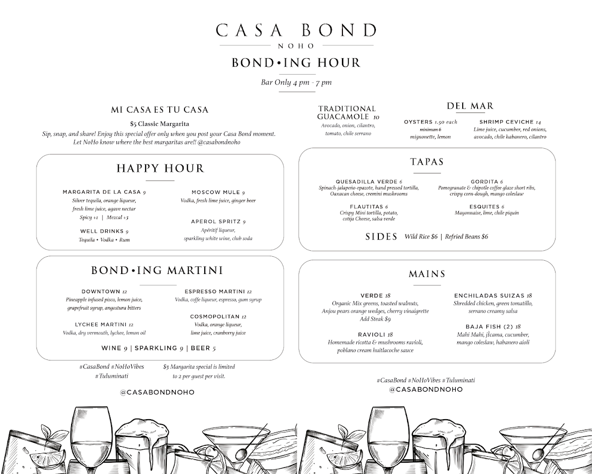Welcome to Casa Bond NoHo, nestled in the vibrant Bowery of New York City. This fine dining Mexican restaurant offers an exquisite menu that elevates traditional flavors with a creative twist. Guests rave about the complex mole, delicious salsas, and freshly made tortillas that showcase authentic Mexican ingredients.