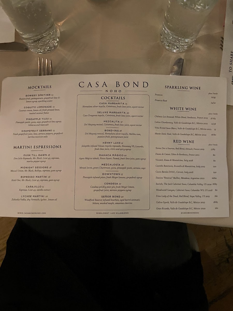 With attentive service that fosters a feeling of being at home, Casa Bond NoHo truly delights with every visit, ensuring that diners leave excited to return.